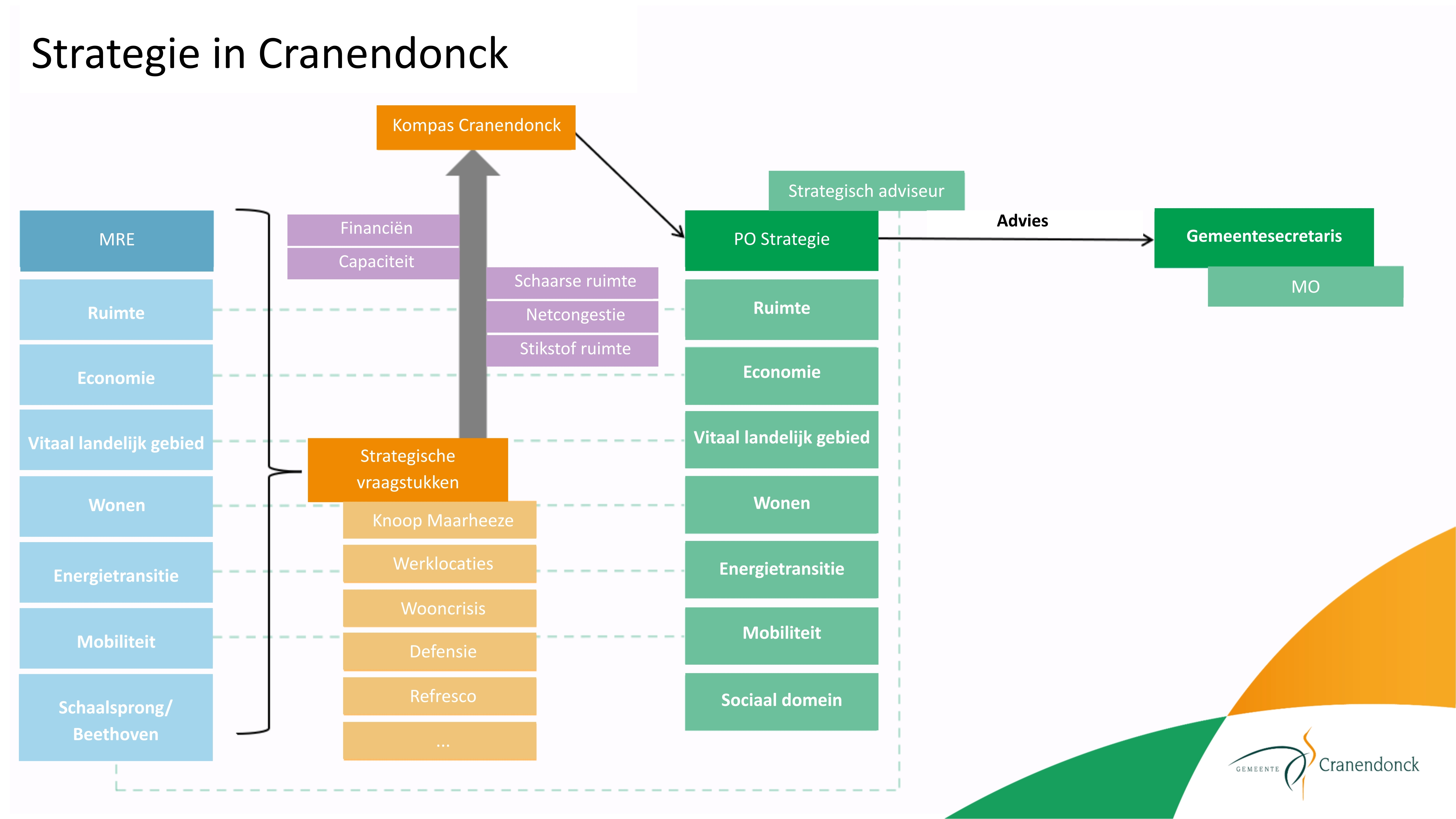 De strategische input én de input op strategie is dáár nodig waar besluitvorming plaatsvindt, zodat de richting en dus de uitvoering ook bij Cranendonck past.